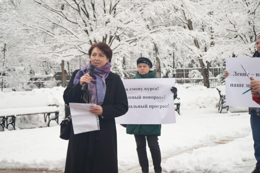 Мероприятие, несмотря на обильный снегопад и перебои в работе городского транспорта, прошло у старейшего в городе памятника Ленину – в Вишняковском сквере.