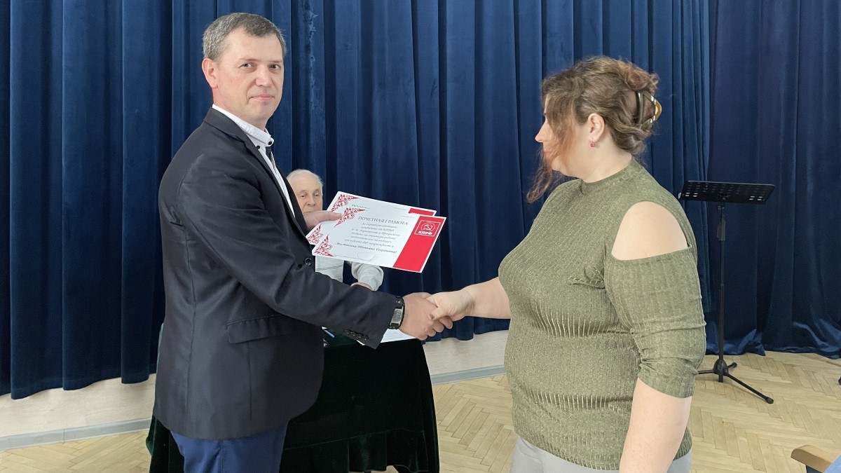 В начале мероприятия, по традиции были вручены партийные билеты новым коммунистам и поздравления юбилярам. Два молодых коммуниста пополнили ряды городской первичной организации № 2 и ст. Восточной.