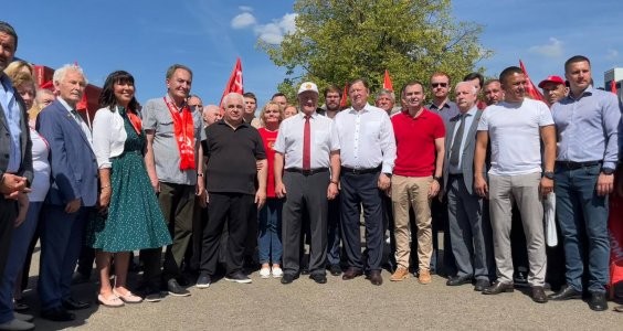 — Уважаемые товарищи! Сегодня КПРФ и народно-патриотические силы с этой площадки совхоза им. Ленина отправляют 127-й гуманитарный конвой.