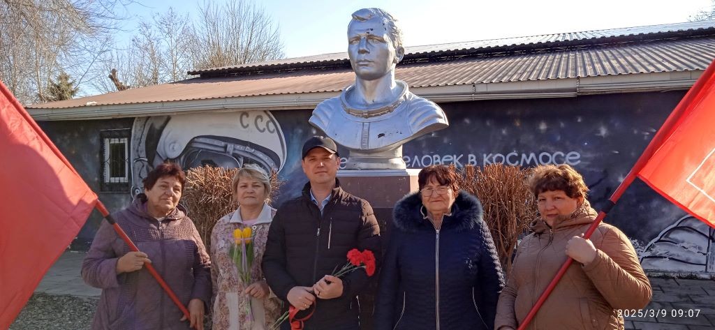 День рождения первого космонавта Земли Юрия Гагарина коммунисты Усть-Лабинска и села Суворовское отметили у памятника выдающемуся исследователю космоса. Они возложили цветы к бюсту, отдавая дань уважения великому человеку, проложившему дорогу к звёздам.
